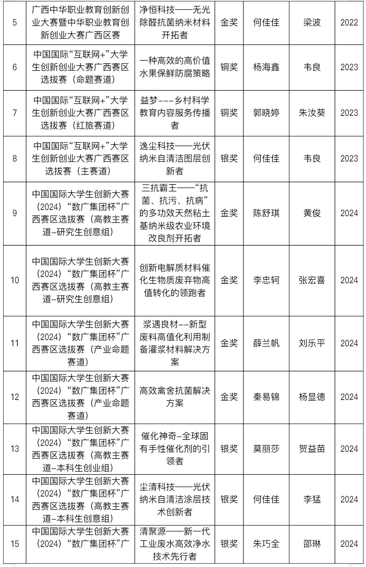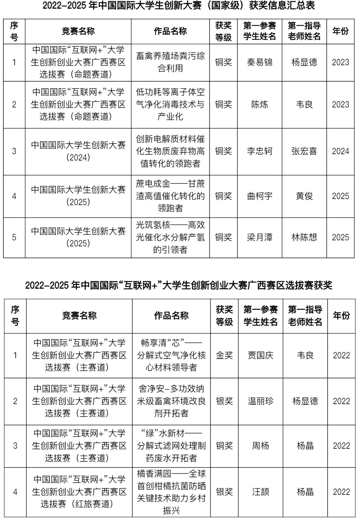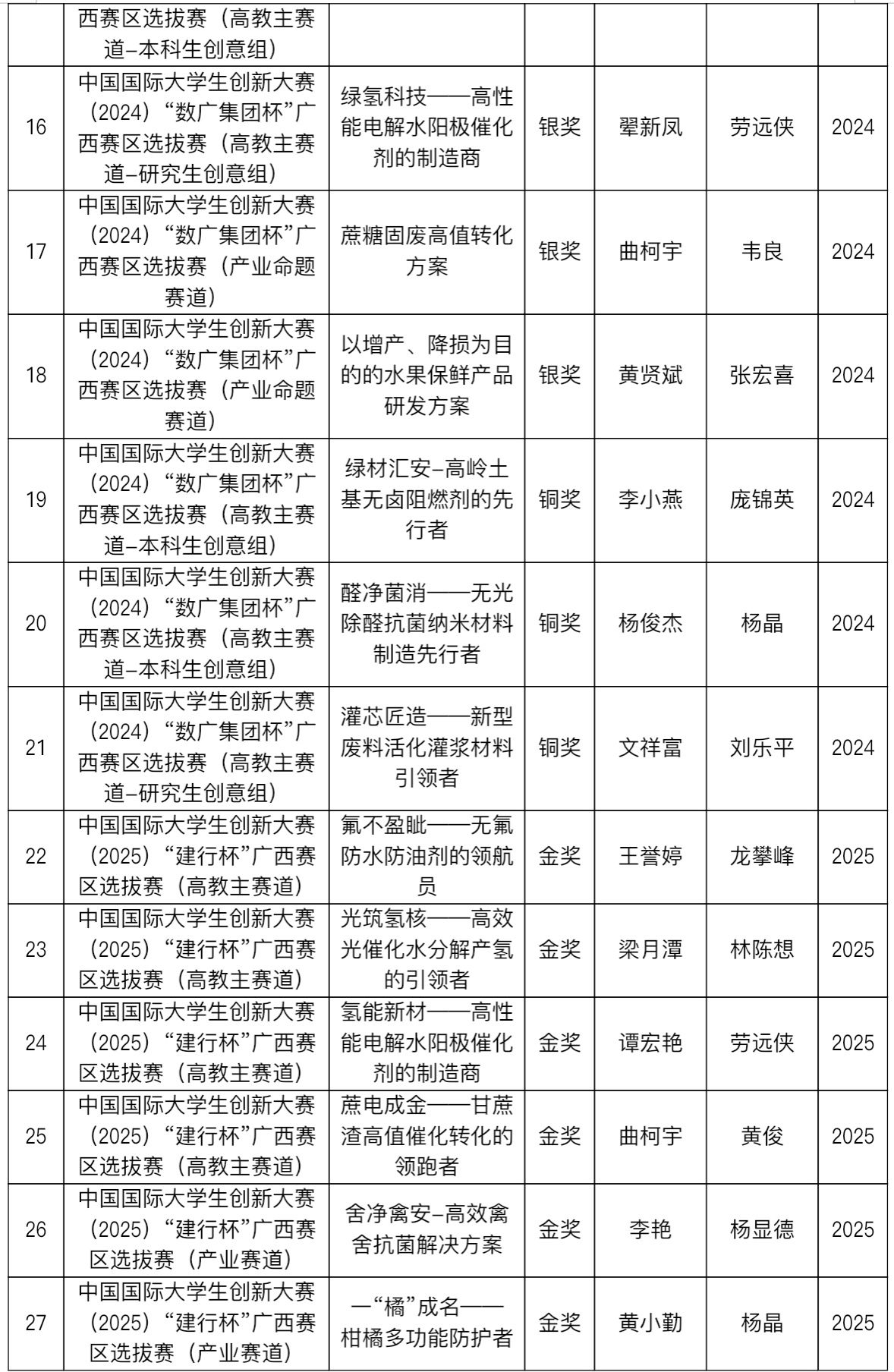 2022-2025年中国国际大学生创新大赛获奖